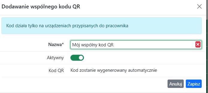 ? Wspólne kody są odwrotnością działania – pracownicy nie skanują swoich kodów w aplikacji – muszą jedynie swoimi urządzeniami zeskanować jeden, wspólny QR.